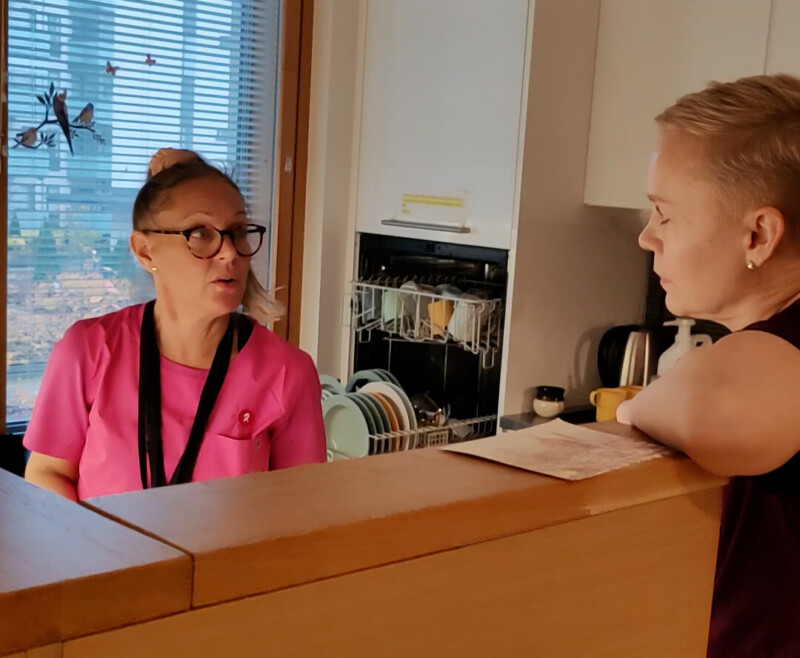 Hoitajaparini tunsi asiakkaat ja otti heidät tarpeensa huomioon. Esimerkiksi kivuliaalle ja toisinaan aggressiiviselle potilaalle annoimme ensin kipulääkkeet ja vasta myöhemmin palasimme hoitamaan aamutoimia. Jokainen asukas tuli kohdatuksi. Toimintaa leimasi kiireettömyys.