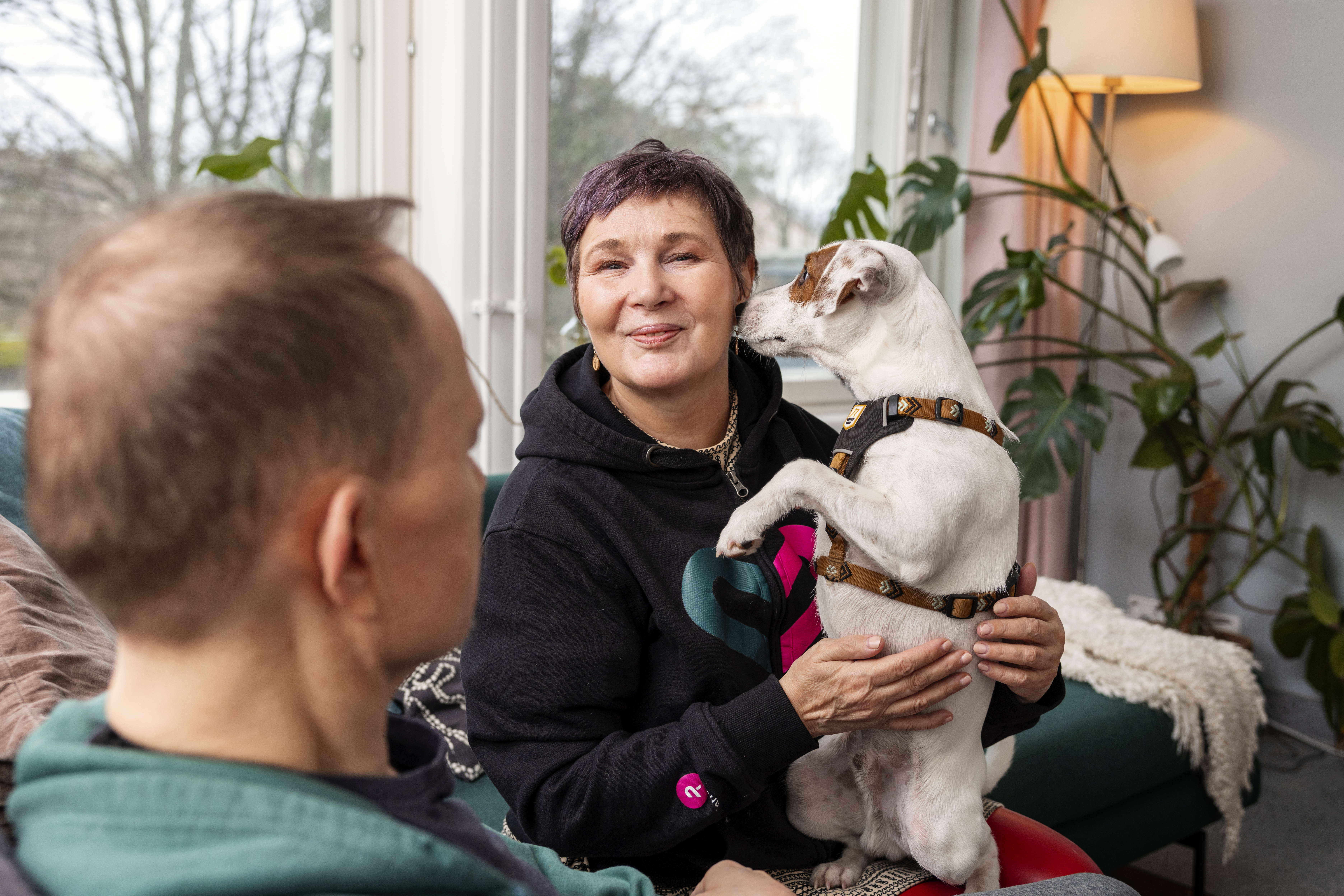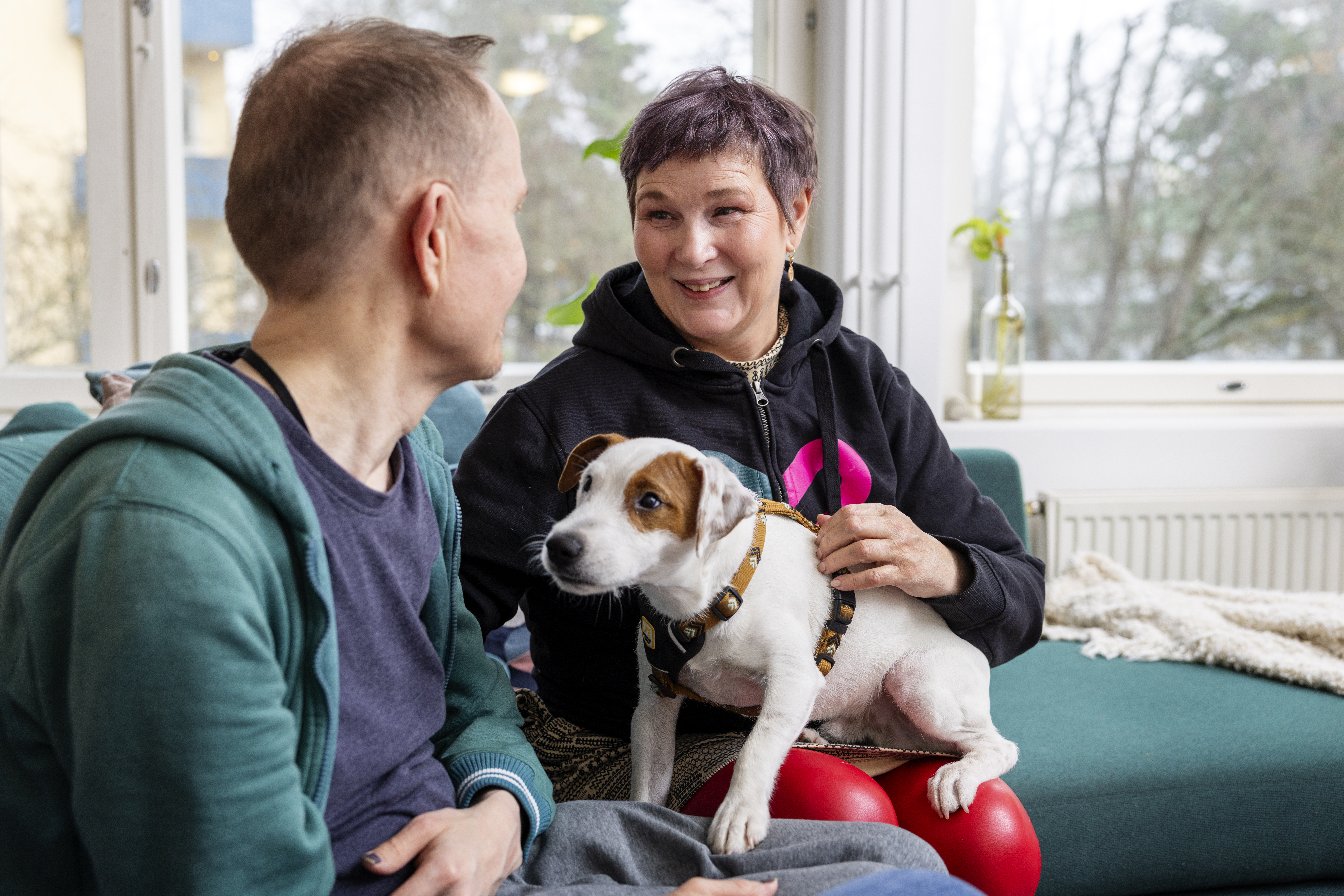 Paljerinteellä henkilöstön ja asiakkaiden hyvinvointia tukee myös kuusi kuukautta vanha parsonrussellinterrieri Juju, joka vierailee yksikössä säännöllisesti Kovalaisen kanssa.