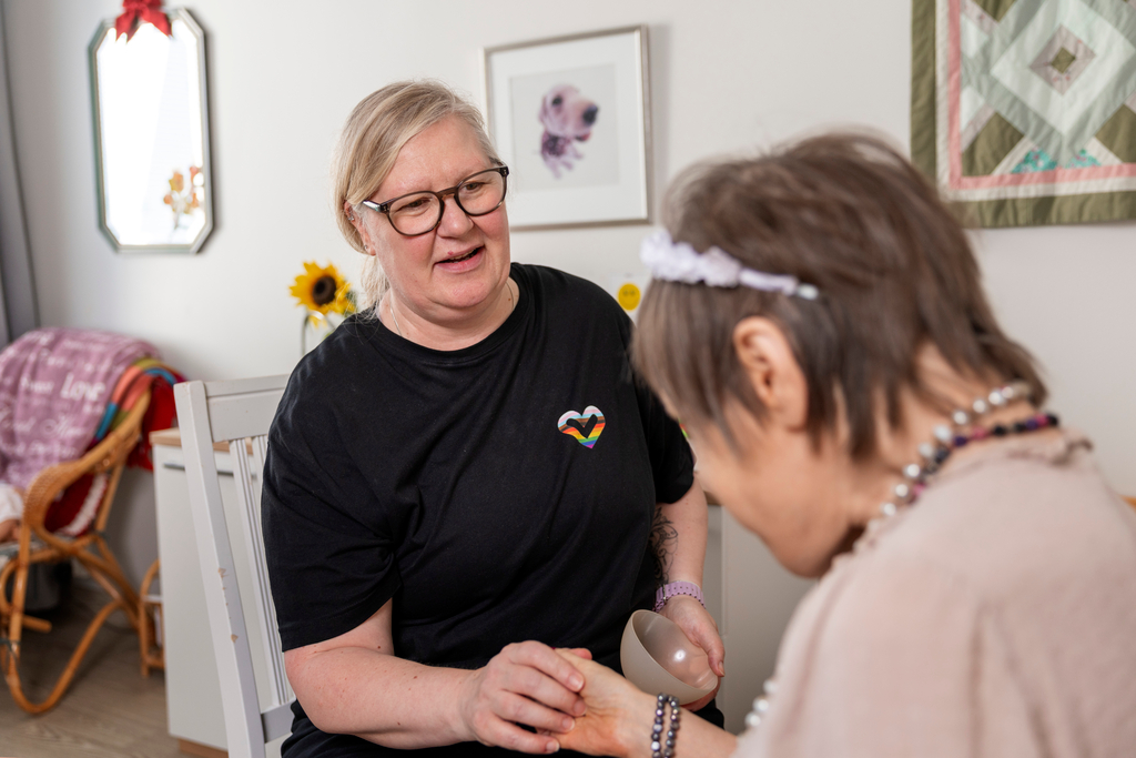 ”Tärkeää on olla läsnä asiakkaan arjessa ja ohjata asiakasta rauhoittavaan tekemiseen. Esimerkiksi liian nopea tai hätääntynyt reagointi voi vain provosoida asiakasta.”